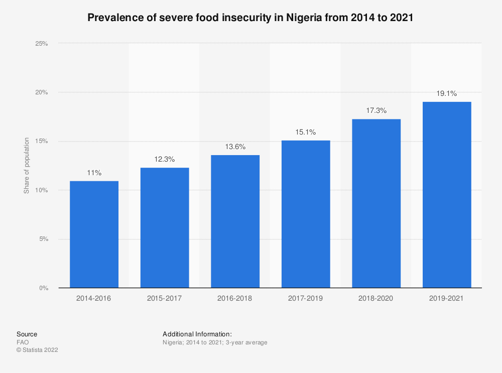 About 11% of Nigeria’s population, 25 million people, are at risk of food insecurity