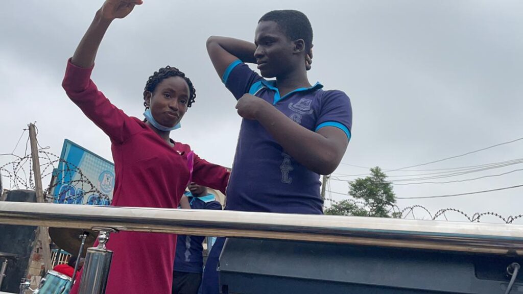 The awareness exercise featured ways in which self-breast examination can be carried out. This session of the exercise was led by Ruth Oladele, Administrative Officer of Slum and rural Health Initiative Network (SRHIN). Ruth led the students in carrying out a self-breast examination on the spot of the campaign.